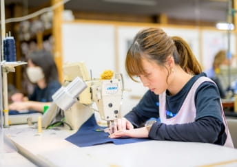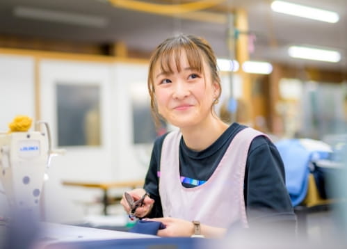 母袋産業株式会社では、経験・年齢を問わず、一緒に心のこもった服作りをしてくれるスタッフを募集しております。実務未経験の方でも、間接業務で当社の仕事の流れを把握していただいた後、縫製スタッフへとステップアップすることができますので、安心してご応募ください。